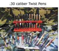 Custom hand turning, jewelry quality bullet style pens for the sports / military enthusiast. Four different stylized bullet writing instruments available in 24K Gold, Gun Metal,
