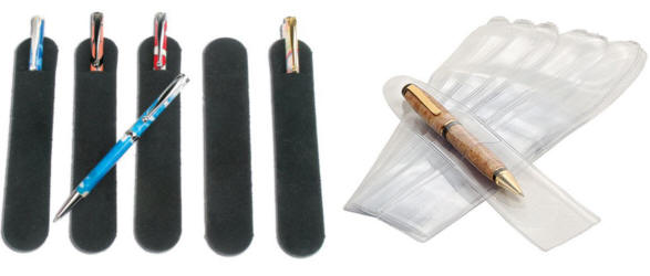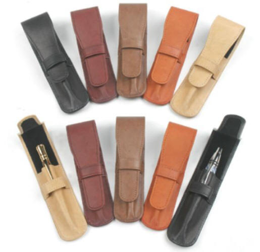 Optional boxes and pouches available for pens / pencils, wood gifts Leather Pouches in black, maroon, brown, tan, and buff colors - $5 ea. Felt drawstring pouch in black - $2 ea.