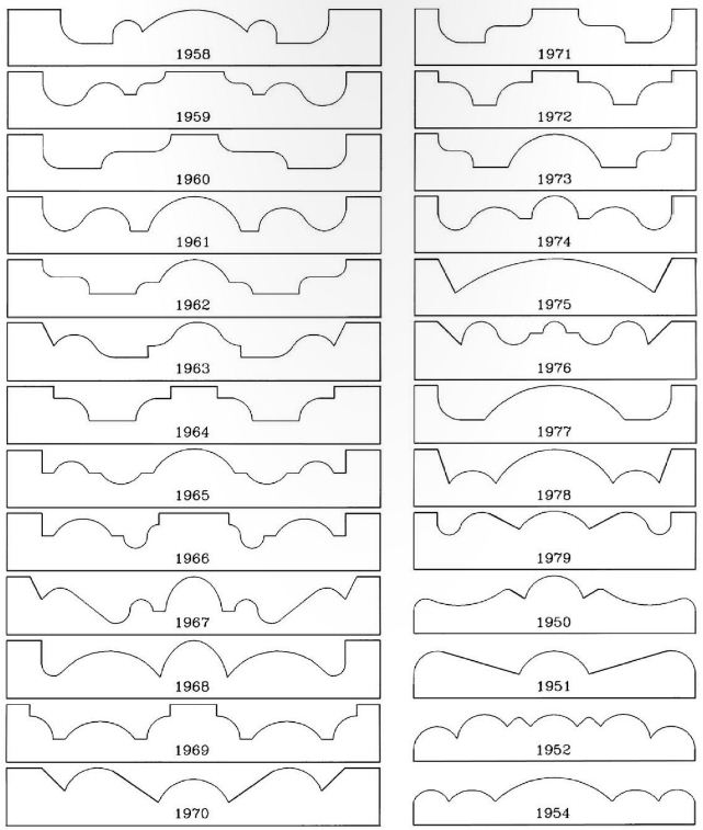 Restoration rosettes Short run, restoration rosettes a specialty, and fast turnaround on rosette production runs. No setup charges, no charge for in-house knives, custom knives billed at our cost. Free delivery within the Greater Boston / North Shore area Available, standard rosette profiles are shown below. Non-standard profiles are available, simply supply a sample or full size profile drawing of the rosette, we will create the custom rosette knife. |